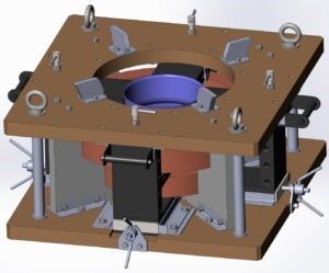 Враховуючи те, що загальна вага конструкції до розбирання перевищує 500 кг, була прийнята вертикальна схема розташування валу. При цьому колесо, що на даному етапі підлягає збиранню, розташоване знизу, і на ньому з допомогою верхніх магнітопроводів закріплений индукційний нагрівач. Завдяки нагріву в індукційному нагрівачі відбувається локальний нагрів саме колеса ротора, при цьому вал залишається протягом циклу розбирання відносно холодним. Завдяки термічному розширенню посадкова поверхня колеса збільшується в діаметрі. Натяг зменшується, і коли в з’єднанні утворюється зазор, воно розбирається. При цьому нижнє колесо разом з закріпленим на ньому індукційним нагрівачем під власною вагою вільно сповзає з валу.